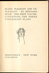 1567. (George) Bernard Shaw. Plays Pleasant and Unpleasant : The First Volume, Containing the Three Unpleasant Plays |